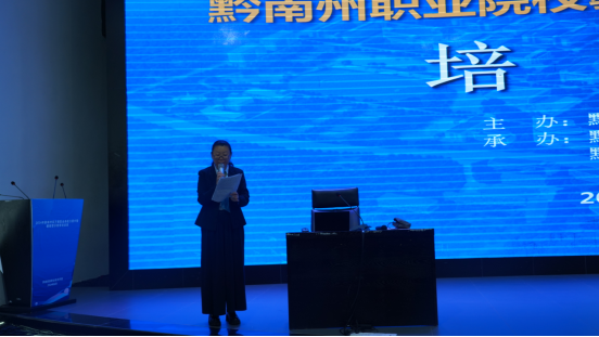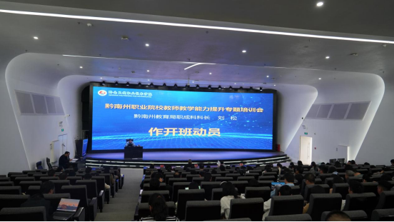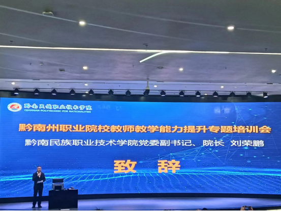 2024年4月13-14日,为深入学习习近平总书记关于职业教育工作的重要指示精神,促进教师综合素质、专业化水平和创新能力的全面提升,提高我州职业院校教师教学能力和参赛水平,黔南州职业院校教师教学能力提升专题培训会在我院知行楼一楼(学术报告厅)举行。本次培训会议由学院党委副书记、院长刘荣鹏致辞,副院长何琳介绍本次培训专家,黔南州教育局职成科科长刘松作开班动员讲话。副院长何琳主持本次会议。
